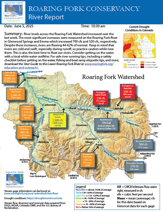 Roaring Fork Watershed stream gages: www.roaringfork.org/your-watershed/river-flow/