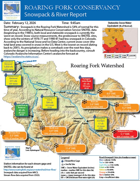 Interested in receiving Roaring Fork Conservancy's weekly Snowpack and River Reports directly into your inbox?