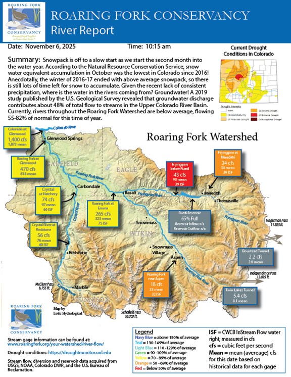 Roaring Fork Watershed stream gages: www.roaringfork.org/your-watershed/river-flow/